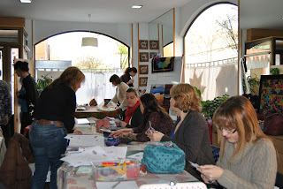Intercambiamos además direcciones, teléfonos, besos y lágrimas, las ATCs,(Artist Trading Cards es decir Tarjetas Artísticas de Intercambio). Precioso recuerdo que guardaremos como un tesoro.¡Días entrañables en un lugar maravilloso de la Sierra de Madrid! Una experiencia humana y de arte en la costura, de creación y de compartir, tal vez irrepetible.