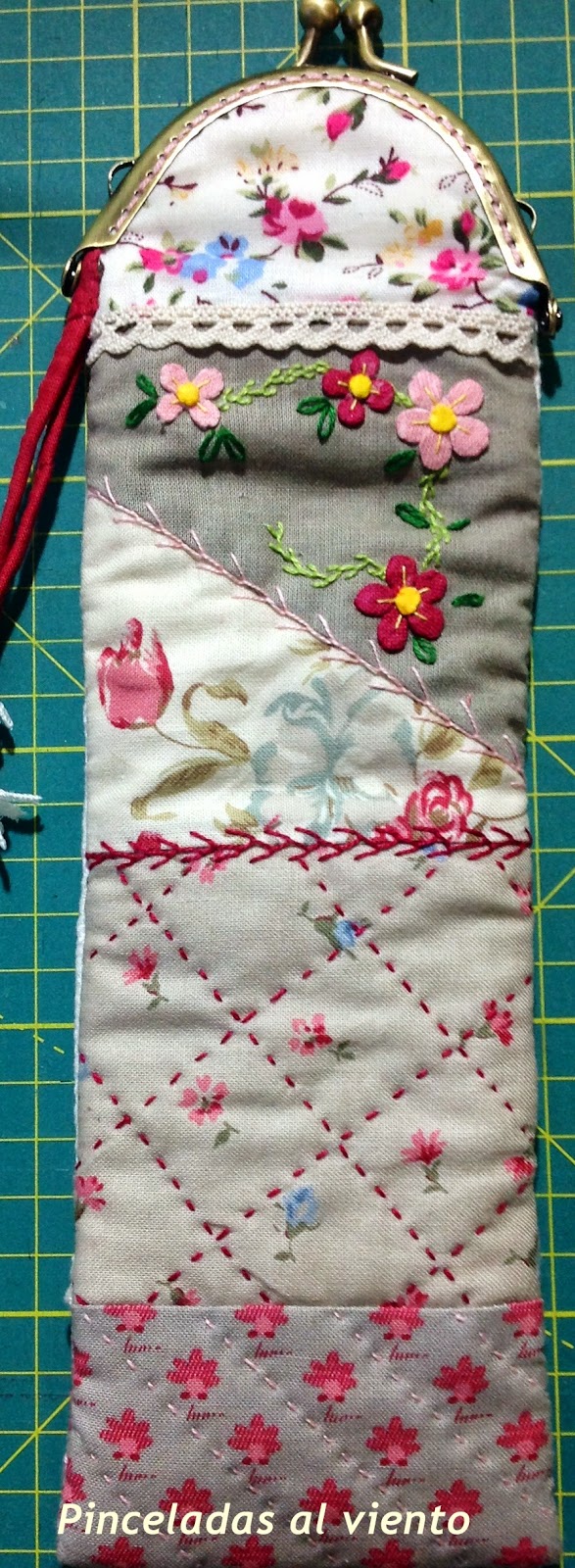Esta funda la saqué de la revista Patchwork Secrets proyecto de Fabiola Granados. Ella lo hizo bordado, pero yo como lo veo todo con puntada escondida, lo hice con aplicaciones, y así ha quedado. Es mi toque personal.