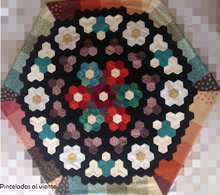 Fui sumando los pequeños hexágonos y encajando con puntadas y colores, como hacemos las cosas en el patchwork.